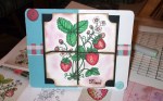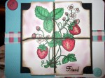 Soooo by now you should know I loooooove Flourishes.org stamp sets. This order I got a set for strawberries. I have some great memories of strawberries growing up. Before the houses were built in my neighborhood the grounds were farms. In fact the land our house is on was orchards. This means the ground is great for growing things. Well there was a patch of strawberries in our backyard…the way back of the yard. Moms house has an acre of land. I guess it wasn’t too far from the single pear tree that was left over. I am not sure if the I was allowed to eat those strawberries, but I know I did. Maybe where I lived influenced my love of fruit.