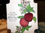 The apples stamp from flourishes.org This was my first creation playing with color and then playing with some dimensional magic. You can see the magic makes the picture darker. I like the glossy and raised feeling. No collection name as of yet. Still need to play with it I think.