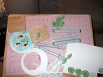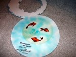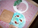 For this project I used the waterlily set so this would be in the Tami Lyn collection. I wanted to make a card that looked like a pond. I happened to find a cut on the cricut that gave me a good card shape. I stamped about 25 lily pads and colored each one. I placed the pads on the outside of the card. The pond on the inside was made with dimension magic. I of course put little fishes inside. I am pretty proud of the card, colors, and design.