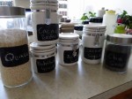 Have been putting off making chalkboard tags for my storage bins for a long time since I didn’t have the paint. Thanks to a christmas present from my friend Mandy I was able to make these happen over the snow days. Important to note that making a template didn’t end up working. The paint stuck to the template and peeled right off. I hand to wing it making chalk boxes the second time. The paint says you will need 2 coats. Always do more. Depends on the material of course. These needed 4-5 coats. Let each coat dry for an hour. After last coat you need to cure it for 24 hours. Then you scribble lightly with a piece of chalk for priming. Once that is done you are ready to go. You can wash these with soap and water. Since the containers are for pantry type items you don’t need to wash often.
