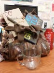 Due to her position she has done a lot with sustainability so I made her a Do One Thing notebook out of a cereal box. I just wrote the words/drew the images on the front cover. Sewed with some colorful craft floss.