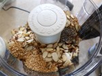 Put the nuts and seeds in food processor until flour like substance is formed. Then add in everything else. You want to blend until the food processor starts kicking about the yummy goo in a big ball. If things arent sticking well with the 1 cup of dates. Maybe you added too much other stuff. So add more dates until the consistency matches.