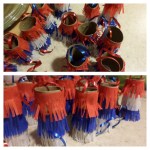 We used a hot glue gun instead of regular glue. I already had streamers so we used that instead of tissue paper. I have a martha stewart clipper that does a tripple cut. Pretty handy when trying to fray things.