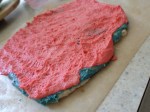 They sliced pretty good. Put in oven 350 for 12 minutes. They do look more pink than red but o well.