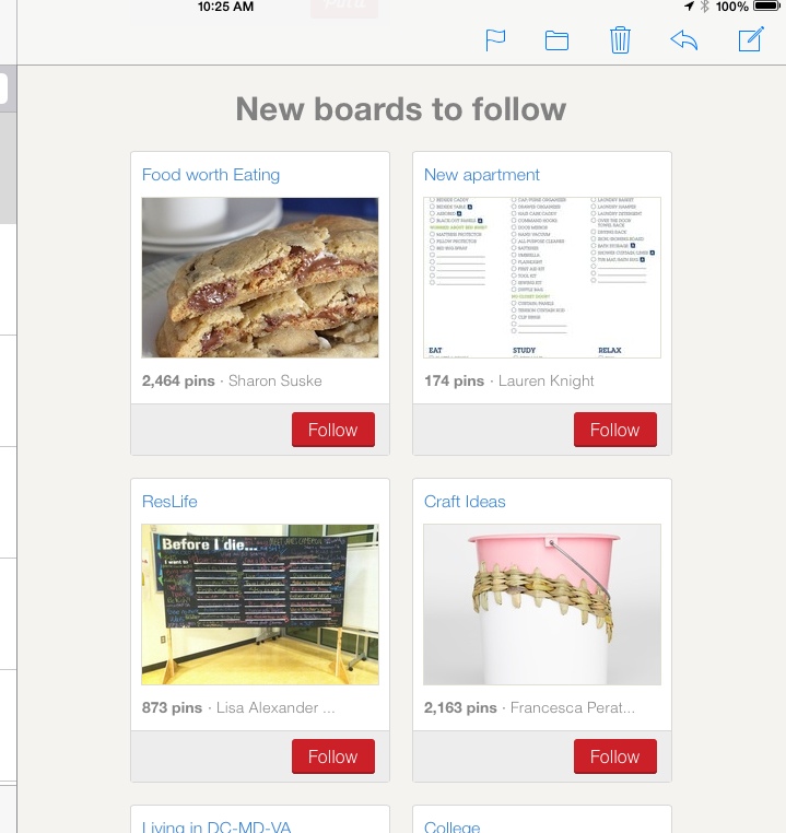 Uncategorized Posted by octobersixthcreations on July 4, 2014January 2, 2016 Pinterest sends out emails to users for boards/pinners to follow. Someone sent me this email to show that my reslife board gets promoted. coolness You should follow all my boards though. I am pretty darn cool. Share this: Click to share on X (Opens in new window) X Click to share on Facebook (Opens in new window) Facebook Like Loading...