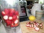 Made strawberry fruit roll ups or fruit leathers. Great if you have a bunch of fruit about start truning. No waste here. Great for snacks in kids lunch.