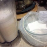 sometimes i decide I want to make my own almond milk. typically we buy Whole Foods brand for the hubs to eat with this breakfast.. so for $5.17 i get about 2 liters of fresh almond milk. good for about 5 days. this weeks smoothies will def have this almond milk in it. The bottles are from Ikea. I could not find bottles air tight and ones I liked at thirft store. About eight dollars for both jars.