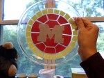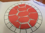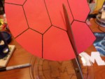 Cut out your template shapes. Make sure cut inside the lines. You don’t want the black print lines to show plus you want there to be space between the pieces for it to look like a mosaic. I used the white version of the template to place all the pieces so I didn’t get lost when I had to glue everything. Apply the mod podge to the bottom of the glass and place your paper shapes. It is like putting together a puzzle. Move quick with mod podge because it dries pretty quick. Once everything is placed you coat the whole paper area on the back with a layer of mod podge. It dries clear. Wipe the marker off with a rap that has some rubbing alcohol on it.