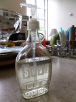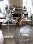 Maple syrup glass bottles turned into functional items for the home. Soap dispenser and oil container.